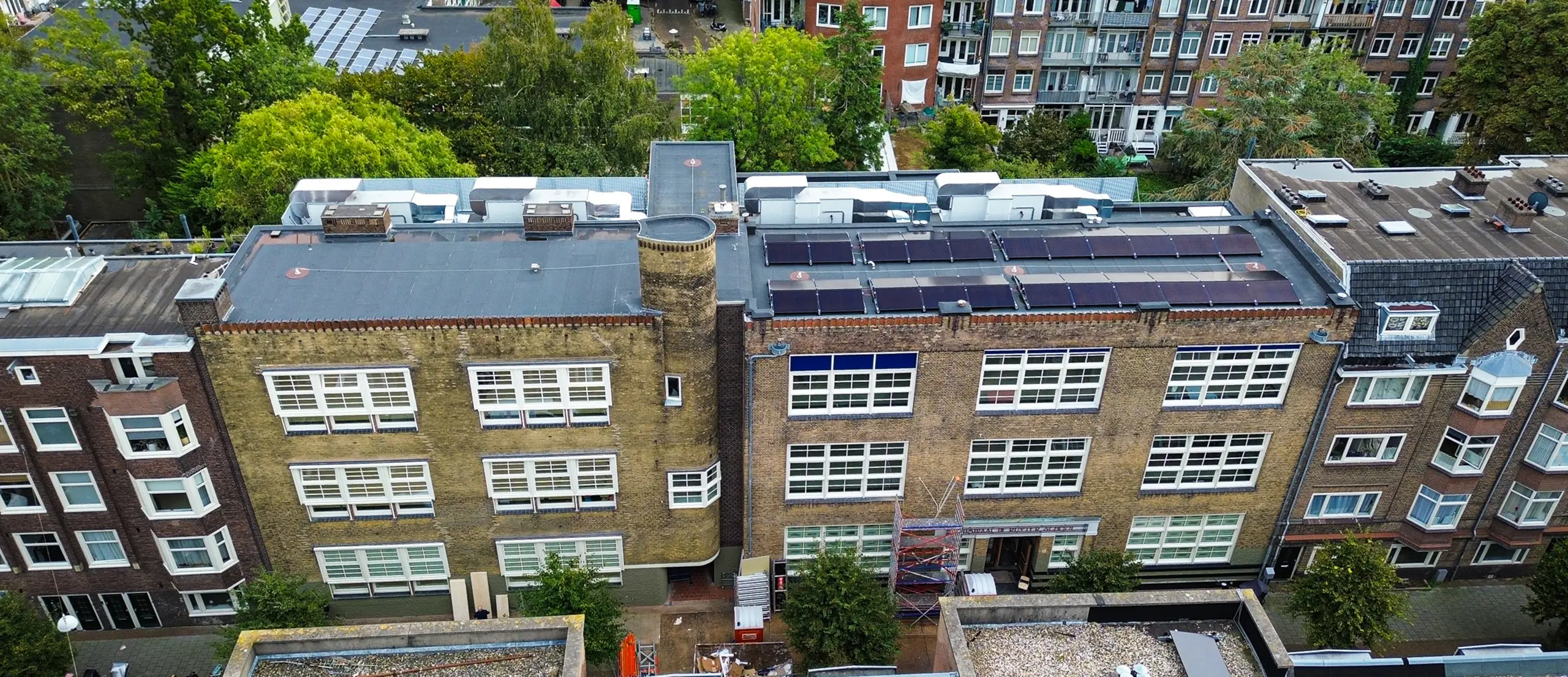 Nieuw dakbedekkingspakket aangelegd bij De Admiraal de Ruyterschool in de Bestevaerstraat in Amsterdam.