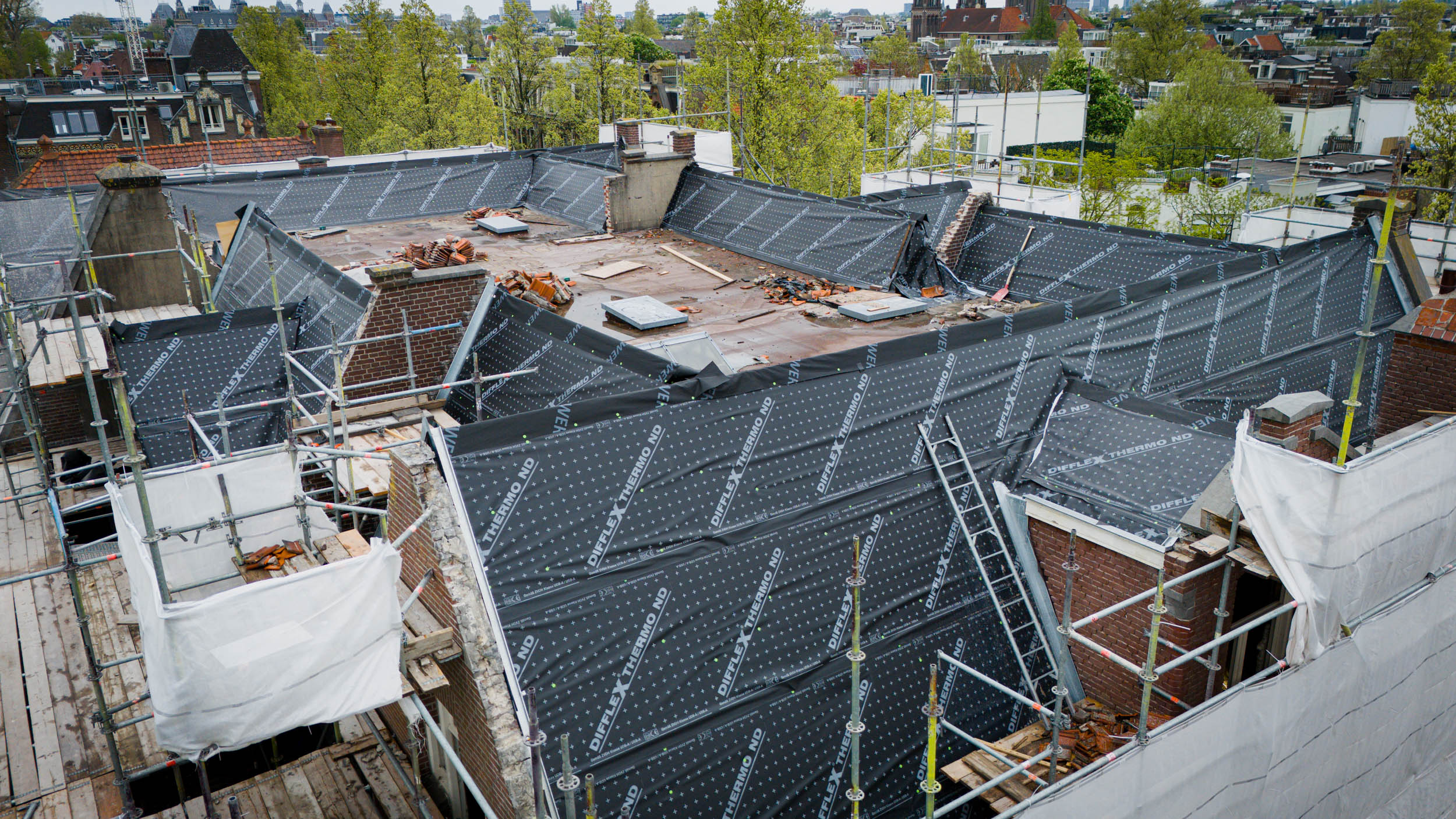 Aan de Van Eeghenstraat in Amsterdam heeft Korff Dakwerken de dakrenovatie verzorgd van drie monumentale herenhuizen uit 1902. Deze karaktervolle panden, gelegen aan het Vondelpark, zijn samengevoegd en getransformeerd tot vijf ruime appartementen.